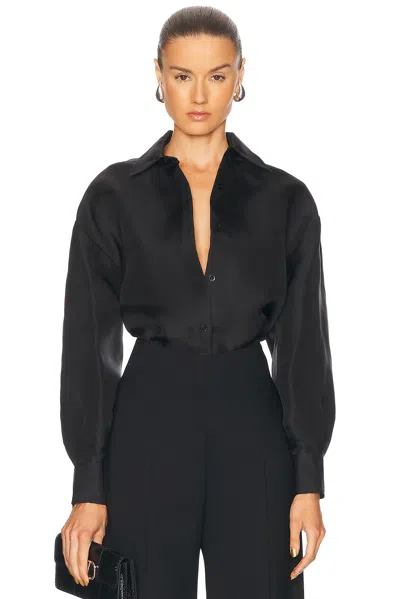 Carolina Herrera Oversized Button Down Top in Black 100% silk. Made in Italy. Dry clean only. Front button closure. Button cuffs. Midweight crepe fabric. Item not sold as a set. Garment is made with a semi-sheer fabric, undergarments can show through. CRRF-WS14. S2511N230TXG. About the designer:
