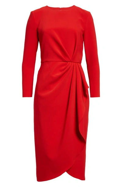 Pleated Long Sleeve Tulip Midi Dress In Poppy