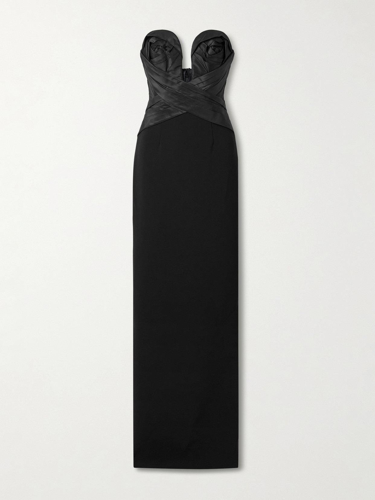 CAROLINA HERRERA Strapless Draped Satin And Crepe Gown In Black