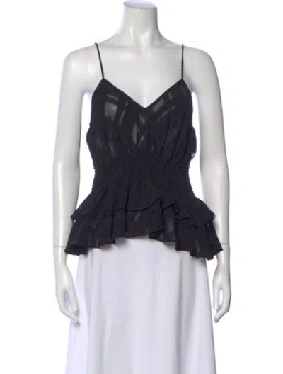 Caroline Constas Top Blue Patterned Ruffle Embellishment Sleeveless with V-Neck Fit: Tops by Caroline Constas typically fit true to size. | Caroline Constas Patterned V-Neck Top in Blue, Women's XS