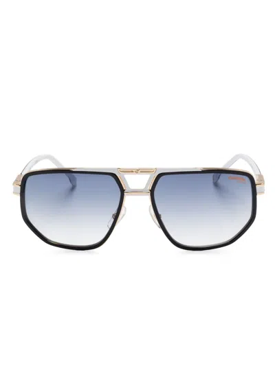 black nose pads curved tips tinted lenses These glasses come with a protective case.