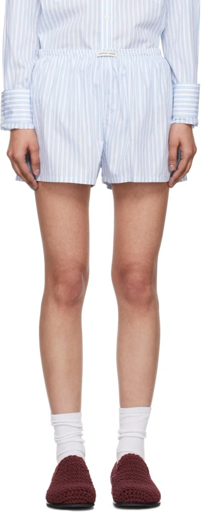 CARTER YOUNG Ssense Exclusive Blue Shorts In Sapphire Stripe