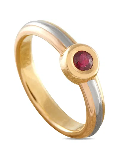 18K yellow, rose and white gold round-cut bezel-set ruby 3mm wide band Normal everyday use and external agents may reduce the lustre of gemstones and gold surfaces. To maintain, use specific, non-abrasive products specially meant for cleaning jewellery. Condition: EXCELLENT. This previously owned item is in near-perfect condition with no signs of damage or use. Your purchase will arrive with a gift box.