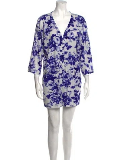 Carven Romper Blue & White Printed Three-Quarter Sleeve with V-Neck Fit: Jumpsuits and Rompers by Carven typically fit true to size. | Carven Printed V-Neck Romper in Blue/White, Women's M