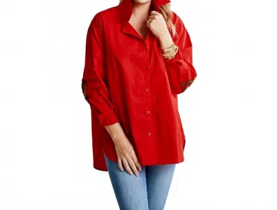 This button down shirt is comfortable yet polished.Introducing the Preppy Gameday Top by Caryn Lawn, a chic addition to any wardrobe. This women's button-down shirt features a classic collar and long sleeves, perfect for a streetwear look on game days or special occasions like Thanksgiving and anniversaries. Patterned with plaid checks in a striking red, this top is designed for style and versatility. Closure - Button closure. Care - Machine wash, tumble dry.