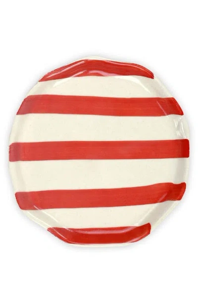 Add a punch of color to your table with the painted stripes of this stoneware plate you can easily mix and match to create a casually welcoming setting. 6.3" diameter 0.5 lb. Stoneware ceramic Hand wash Imported