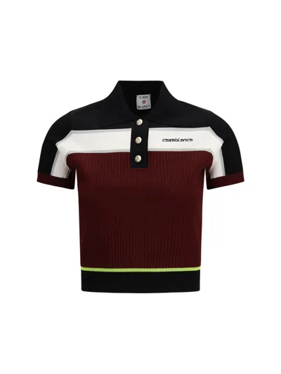 The striped short-sleeve polo Shirt by Casablanca features a refined knitted construction that embodies understated contemporary elegance. The slim-fit silhouette enhances the figure, while the ribbed collar and button placket with signature gold-rim pearl buttons add a distinctive touch. Crafted from viscose, it is a versatile and sophisticated choice for a polished, modern look.. Season: SS26Fit: SlimComposition: 83% Viscose 17% Polyester.