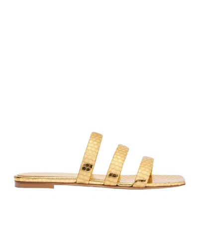 Add a touch of elegance to your summer outfit with the Atomium sandal. Three gold-coloured bracelets embrace the instep, giving a touch of light to make you shine in even the most minimal look.