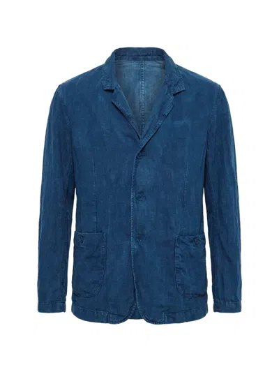 blue front button fastening front patch pockets notched lapels long sleeves