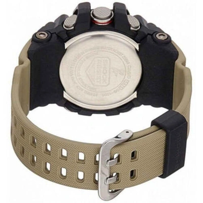CASIO G-SHOCK GG-1000-1A5 MUDMASTER Men's Twin Sensor Compass Beige Watc PRODUCT FEATURES : Digital compass (NORTH) Hand indication of north (20 seconds continuous measurement) Measures and displays direction as one of 16 points Measuring range: 0 to 359° Measuring unit: 1° Bidirectional calibration Magnetic declination correction Thermometer Display range: -10 to 60℃ (14 to 140℉) Display unit: 0.1℃ (0.2℉) WORLD TIME : 31 time zones (48 cities + coordinated universal time) Daylight saving on/off Home city / World time swapping STOPWATCH : 1/100-second stopwatch Measuring capacity: 23:59'59.99'' Measuring modes: Elapsed time, split time, 1st-2nd place times TIMER : Countdown timer Measuring unit: 1 second Countdown range: 60 minutes Countdown start time setting range: 1 minute to 60 minutes (1-minute increments) ALARM/HOURLY TIME SIGNAL : 5 daily alarms (1 snooze alarm) Hourly time signal LIGHT : LED backlight (Super Illuminator) Auto light switch, selectable illumination duration Afterglow Light color: White