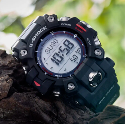 Pre-owned G-shock Master Of Gw-9500-1jf Mudman Triple Sensor Radio Solar Watch