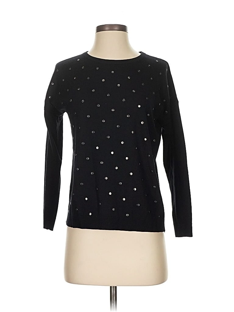 Caslon Pullover Sweater, Size: X-Small. Item Details: Black, Solid Pattern, Crew Neck, Long Sleeve, Studded, Women's Tops, Viscose/Nylon/Polyester, True To Size