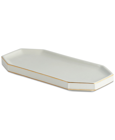 Organize grooming essentials on the elegant elongated hexagon shape of the Cassadecr Ornato fine porcelain bath tray with gold-tone trim