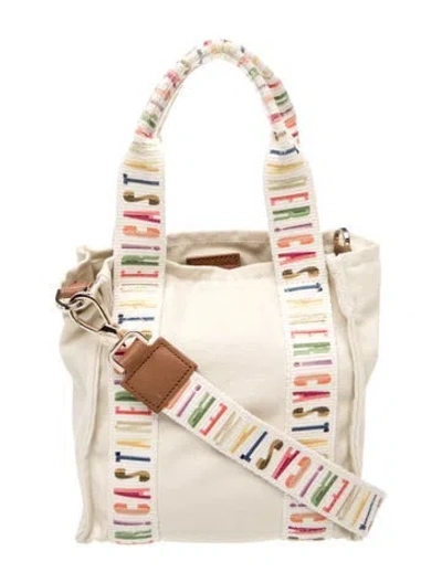 Castañer Top Handle Bag Neutrals Canvas Graphic Print Gold-Tone Hardware Flat Handle & Single Adjustable Shoulder Strap Canvas Lining & Single Interior Pocket Snap Closure at Top | Castañer Canvas Top Handle Bag in Neutrals