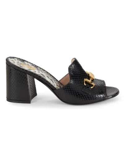 CAVALLI CLASS Women's Python-embossed Block Heel Mules In Black