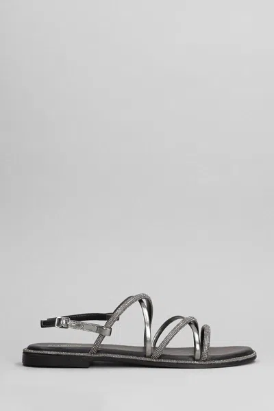 Flats in Gunmetal glitter, multiple thin straps, ankle strap, crystals detail, suede details, Made in Italy