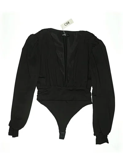 CBR Bodysuit, Size: Large. Item Details: Black, Plunge Neckline, Long Sleeve, Ruched, Women's Tops, Cotton/Polyester