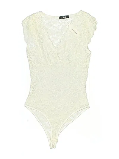 CBR Bodysuit, Size: Medium. Item Details: Ivory, Plunge Neckline, Sleeveless, Women's Tops, Cotton/Polyester