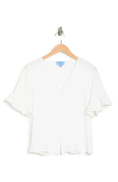 CECE Double Flutter Sleeve Button Front Blouse In Ivory