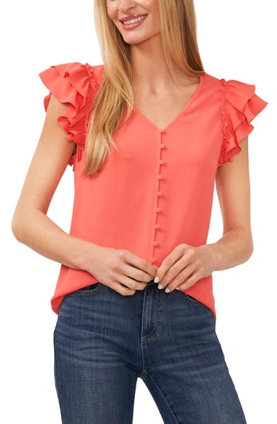 CECE Puff Sleeve Button Front Top In Calypso Coral