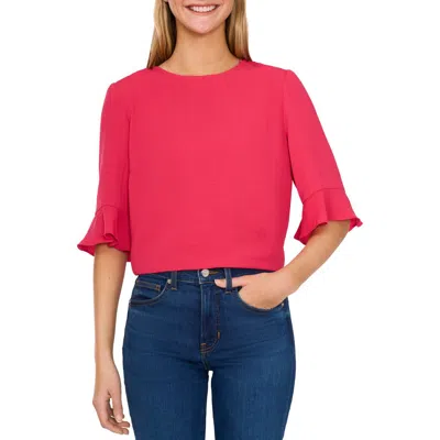 Move easily from work to play in this crinkle-textured top designed with a light drape and framed by frilled cuffs for graceful movement. 23" length Back keyhole with button-and-loop closure Jewel neck Elbow-length sleeves 100% polyester Machine wash, tumble dry Imported