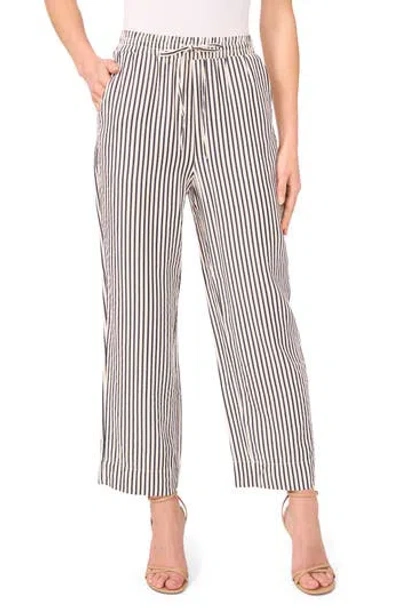 CECE Stripe Drawstring Ankle Pants In Brown