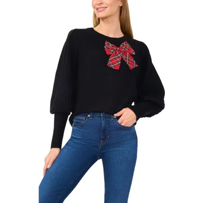 CECE Womens Bow Knit Crewneck Sweater In Black