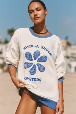 By Celandine 53% Cotton, 47% Polyester Pullover styling Drop shoulders Machine wash Imported Fit: Oversized silhouette Pullover Sweatshirt by Celandine in Beige, Women's Size: 2XS/XS, Polyester/Cotton at Anthropologie