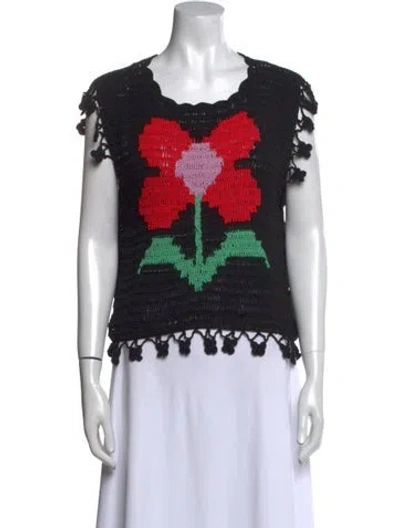 Pre-owned Lace Pattern Square Neckline Top In Black