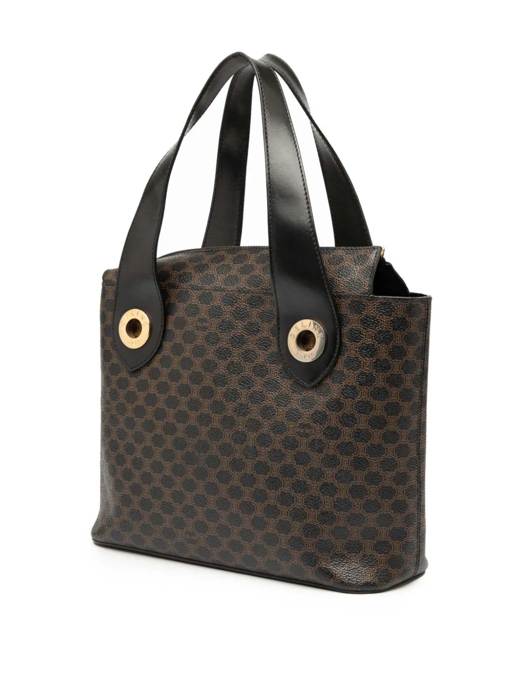 coated canvas body flat leather handles top zip closure interior zip and slip pockets brown Serial Number: MC98/1 This item has no inclusions. Condition: GOOD. This previously owned and used item is in good condition with minimal signs of use. This may include fading of material or plating and scratches. Please refer to the photos on this product page for a detailed view of the item, including any damages declared.