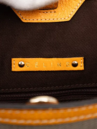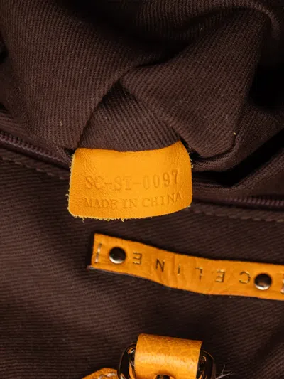 canvas body with leather trim flat leather straps open top with a clasp closure interior zip and slip pockets orange Serial Number: SC-ST-0097 This item has no inclusions. Condition: GOOD. This previously owned and used item is in good condition with minimal signs of use. This may include fading of material or plating and scratches. Please refer to the photos on this product page for a detailed view of the item, including any damages declared.