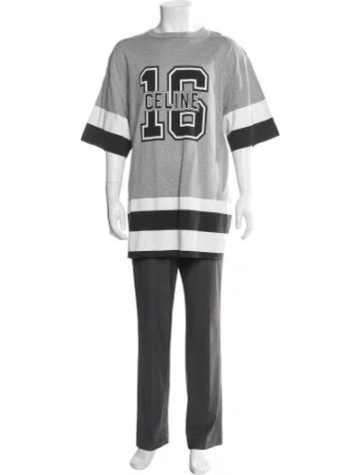 Celine T-Shirt From the Spring/Summer 2023 Collection by Hedi Slimane Black & Grey Striped Short Sleeve with Crew Neck Fit: T-Shirts by Celine typically fit true to size. | Celine 2023 Striped T-Shirt in Black/Grey, Men's S