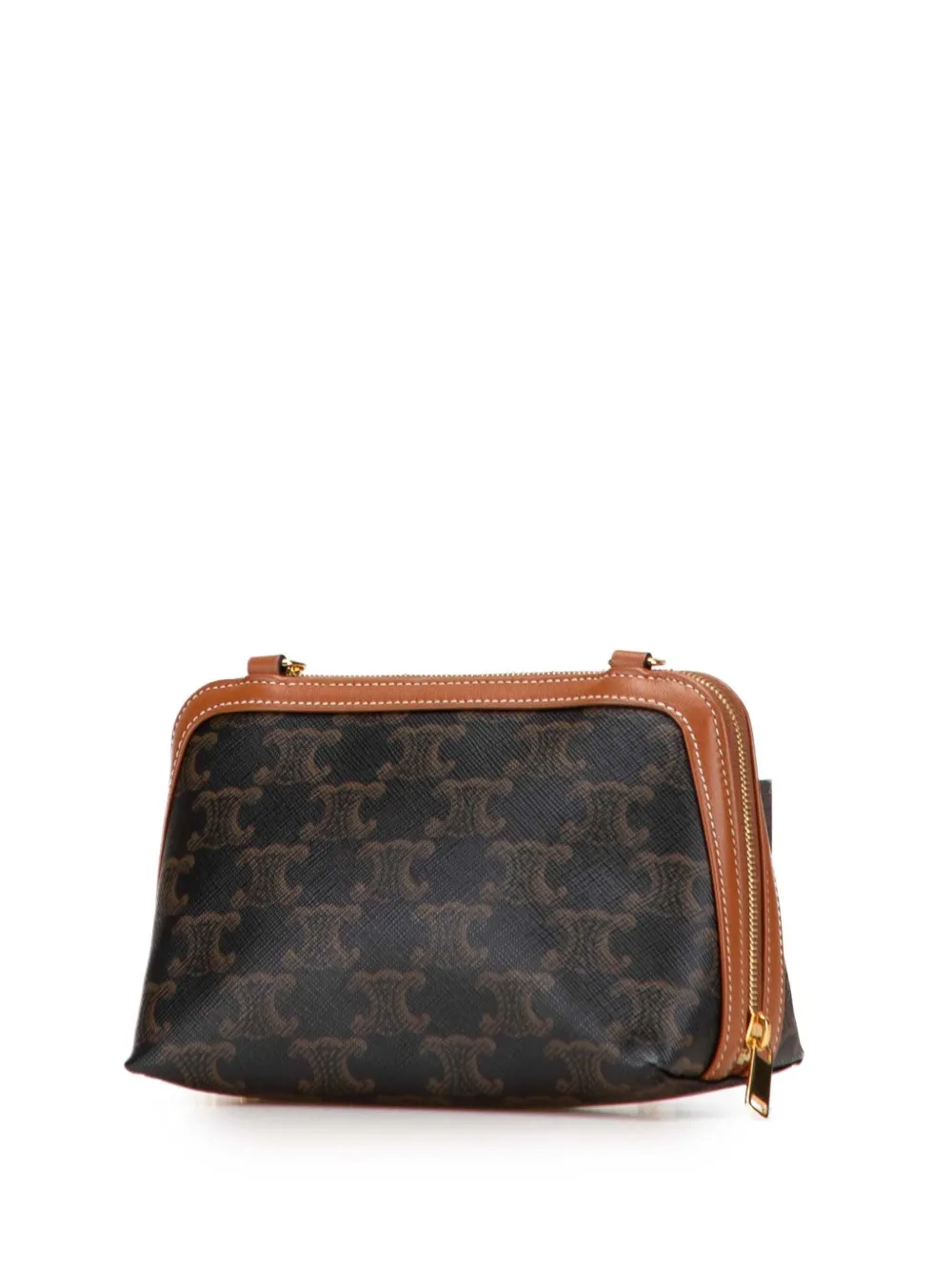 Pre-owned 2024 Triomphe Coated Canvas Clutch On Chain Crossbody Bag In Brown