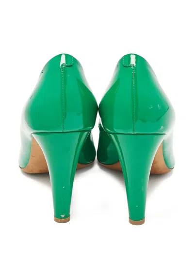 emerald green 90mm tapered heel round toe leather sole Condition: GOOD. This previously owned and used item is in good condition with minimal signs of use. This may include fading of material or plating and scratches.