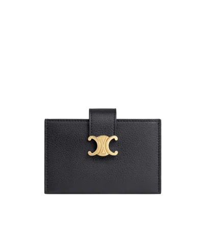 CELINE Accordeon Card Holder In Supple Grained Calfskin In Black