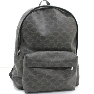 Pre-owned Black Brown Canvas Leather Backpack ()