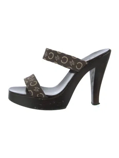 Celine Canvas Slides Brown Patterned Platform | Celine Canvas Patterned Slides in Brown, Women's IT 37 | 7