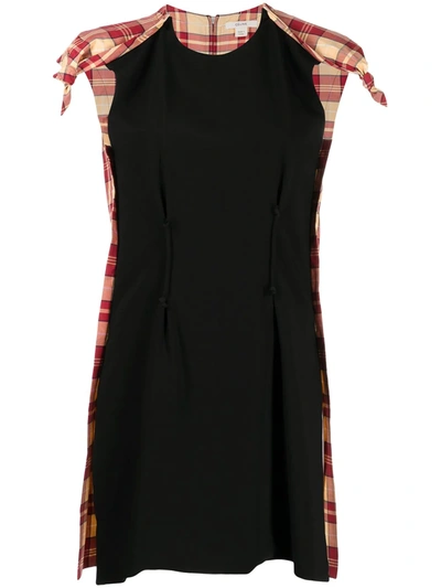 Black/red/beige checked panelled mini-dress from Céline Pre-Owned featuring check print, panelled design, knot detailing, round neck, sleeveless, rear zip fastening, side slits, thigh-length and straight hem. POSITIVELY CONSCIOUS: Purchasing this item continues its narrative and reduces the environmental impact of using new resources. You can be confident that you’re making a better choice for the Planet..