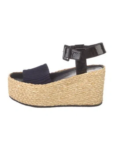 Celine Espadrilles Blue Straw & Patent Leather Trim Platform Buckle Closure at Ankles | Celine Espadrilles in Blue, Women's IT 40 | 10