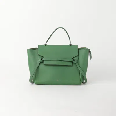 CELINE Grained Mini Belt Bag- Gold-tone hardware- Green leather- Flat top handle and detachable shoulder strap- Tonal suede lining with two interior pockets- VintageOverall Preloved Condition: Very Good.Exterior Condition: Very Good. Light marks at corners.Interior Condition: Very Good. Light discoloration.Hardware: Shiny with light marks.Delivered with shoulder strapMade in ItalyDimensions:Height 23 cm Width 27 cmDepth 16 cmHandle drop 11 cmShoulder strap drop 45 cmPlease note that the majority of our items are vintage and therefore have tales to tell unless stated otherwise. Therefore, please look at pictures, descriptions and measurements provided as they give you the best idea of the story this item has to tell. * Please note that when you buy a vintage product, the dimensions may vary slightly from a new one depending on previous care and storage.