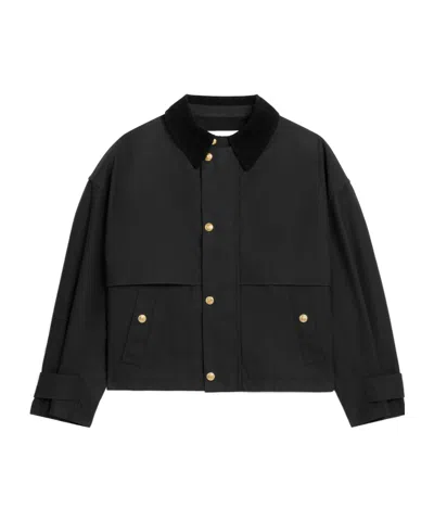 * DETAILS 100% cotton LOOSE FIT corduroy shirt collar dropped shoulders 2 diagonal welt pockets gun flaps on the front and back 2 adjustable tabs on the cuffs chin strap 5 triomphe snap buttons 1 triomphe snap button on the pockets 1 triomphe snap button on the adjustable tabs zip closure Made in Italy Reference : RV0VP0P49.38NO