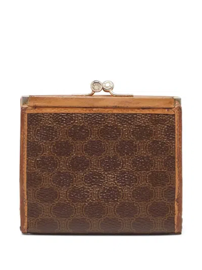 brown leather signature Macadam pattern kiss-lock fastening foldover top with press-stud fastening signature Triomphe motif main compartment Condition: GOOD. This previously owned and used item is in good condition with minimal signs of use. This may include fading of material or plating and scratches.