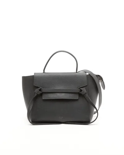 Céline Micro Belt Bag• Black grained calfskin leather• Gold-tone hardware• Single top handle and a detachable shoulder strap• Black suede lining• Flap with hidden metal closure and top zip• One external zipped pocket at the backDelivered with detachable shoulder strapMade in ItalyDimensions:Height 22 cmWidth 24 cmDepth 13 cmHandle drop 10 cmStrap drop 50 cmPlease note that the majority of our items are vintage and therefore have tales to tell unless stated otherwise. Therefore, please look at pictures, descriptions and measurements provided as they give you the best idea of the story this item has to tell.