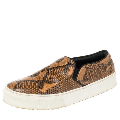 Pre-owned Multicolor Python And Leather Slip On Sneakers Size 38