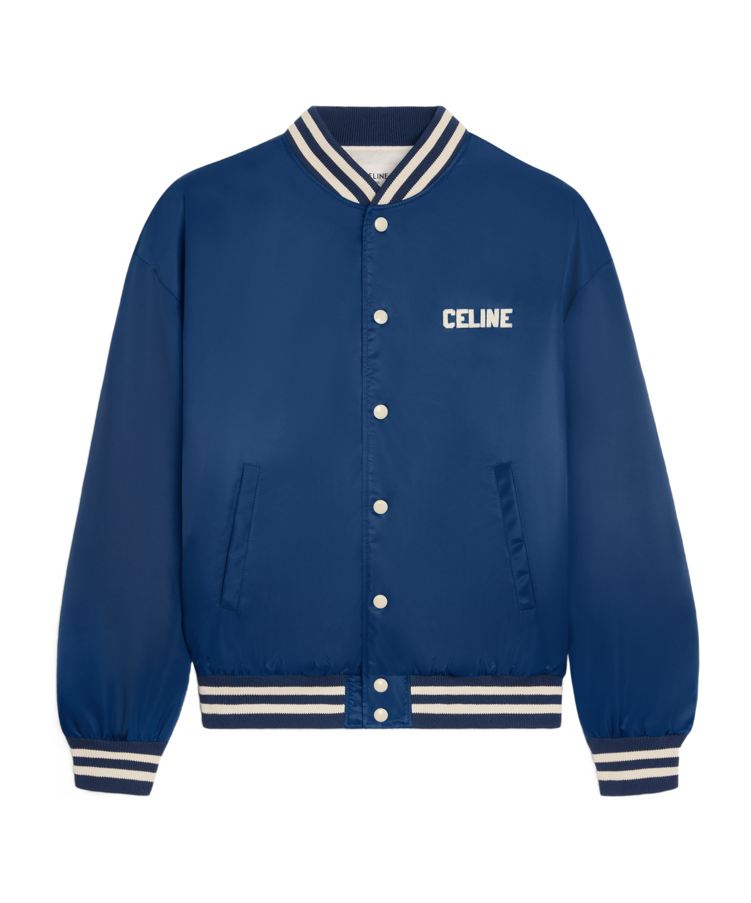 CELINE patch on chest, two-color teddy collar, shoulder relief, 2 diagonal welt pockets, two-color rib trim, CELINE engraved snaps. The lining is 100% viscose fiber and the lining is 100% polyester fiber.