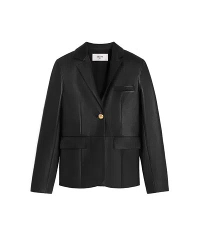 Notched collar, 1 chest pocket, 2 flip pockets, 1 hemispherical button engraved with the Arc de Triomphe, and 4 hemispherical buttons engraved with the Arc de Triomphe on the cuffs.