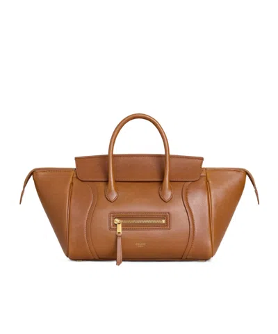 CELINE Small New Luggage In Supple Shiny Lambskin In Orange