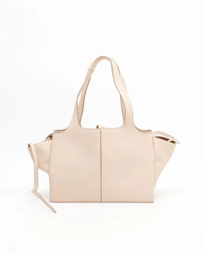 Céline Small Tri-Fold Bag- Gold-tone hardware - Beige leather- Dual handles- Three compartments with light pink suede lining- VintageOverall Preloved Condition: Very Good.Exterior Condition: Very Good. Minimal signs of cracking at handle sides.Interior Condition: Very Good. Few small marks at leather.Hardware: Shiny with scratches.Delivered with no accessoriesMade in ItalyDimensions:Height 22 cmWidth 32 cmDepth 12 cmHandle drop 20 cmPlease note that the majority of our items are vintage and therefore have tales to tell unless stated otherwise. Therefore, please look at pictures, descriptions and measurements provided as they give you the best idea of the story this item has to tell.* Please note that when you buy a vintage product, the dimensions may vary slightly from a new one depending on previous care and storage.