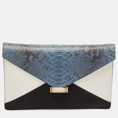 Pre-owned Tricolor Leather Suede And Python Diamond Clutch