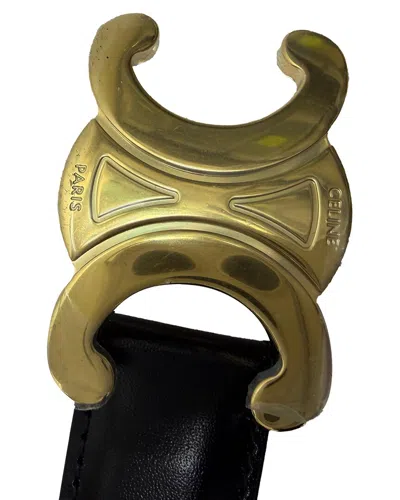 About The Brand: Classic, Coveted Parisian Chic. This Is An Authentic, Pre-Loved Piece. This Item Is In Very Good Condition And Shows Light Signs Of Wear. This Item Shows Lightly Used But Very Well Maintained, May Show Minor Signs Of Wear, Scratches , Worn Corners, Minor Interior Wear. For More Information On Condition, Please See Our Condition Guide At The Bottom Color/Pattern: Female Black Leather Design Details: Introducing The Celine Triomphe Belt In Black Leather, An Epitome Of Timeless Elegance And Sophisticated Style. Crafted From The Finest Quality Leather. At The Heart Of This Piece Is The Iconic Triomphe Emblem, Exquisitely Rendered In Polished Gold-Tone Metal. This Signature Motif Not Only Adds A Touch Of Luxury But Also Subtly Nods To Celine€™S Rich Heritage And Dedication To Impeccable Craftsmanship And Minimalist Design. The Belt Boasts An Adjustable Length, Ensuring A Perfect Fit And Offering The Flexibility To Accentuate Your Waistline Or Hips With Ease. Measures 5.51In Wide X 5.71In High Please Note: All Measurements Were Taken By Hand And Are Approximate; Slight Variations May Occur. Our Products Are 100% Genuine. In Some Cases We Purchase Merchandise From Trusted Independent Suppliers And Not Directly From The Brand Owner. In All Cases We Stand By The Authenticity Of Every Product Sold On Our Site.